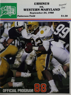 This official souvenir program was issued to commemorate the Ursinus College vs. Western Maryland College football game on September 24, 1988. This event was billed as Parents Day.
