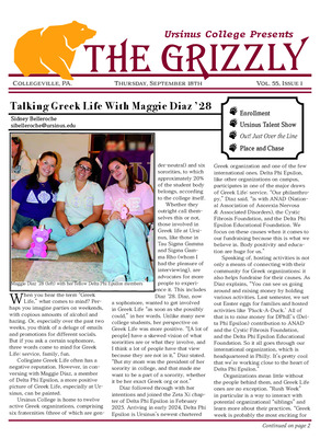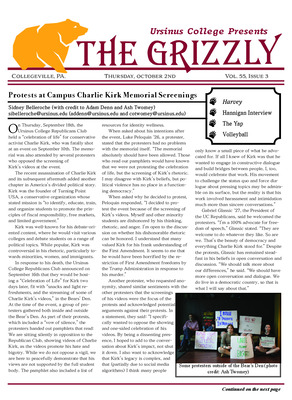 The Grizzly, the student newspaper of Ursinus College, was originally published as The Ursinus Weekly from 1902 until the Spring of 1978 when the name of the publication was changed. It is published weekly by students during the academic year.