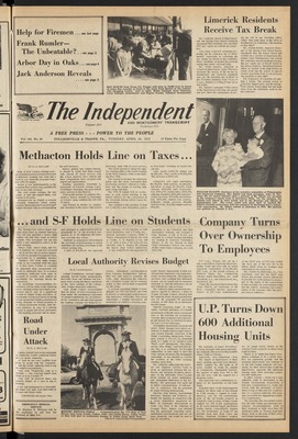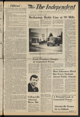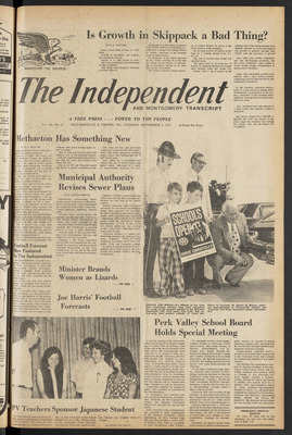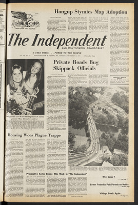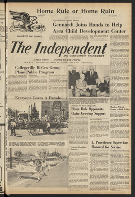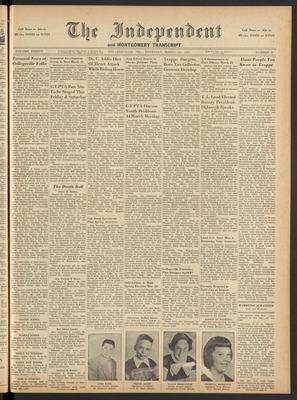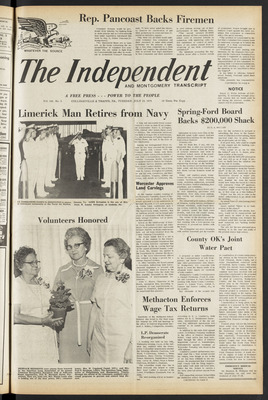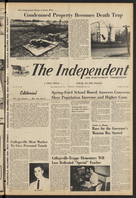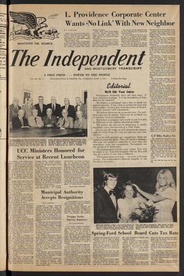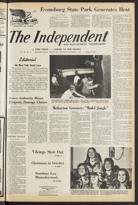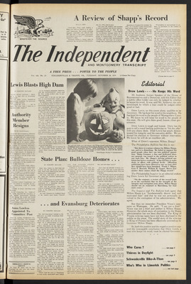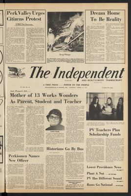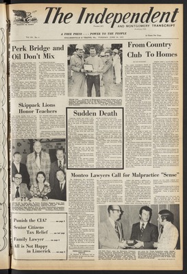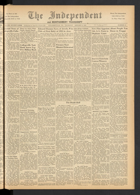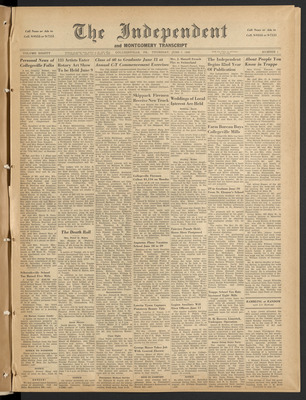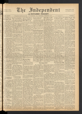 Founded by Elwood S. Moser in June of 1875 as the Providence Independent newspaper, in 1898 the newspaper changed its name to The Independent. After Moser’s death in 1935, the paper continued to be published by the Moser estate until Paul W. Levengood took over as publisher in 1937. In 1952, it merged with the Montgomery Transcript to become The Independent and Montgomery Transcript. After Levengood’s retirement in 1971, John Stewart took over as publisher and editor – greatly changing the focus and editorial tone of the paper. While the newspaper ceased publication on December 25, 2002, digitized issues available here currently end with the May 29, 1984 issue.