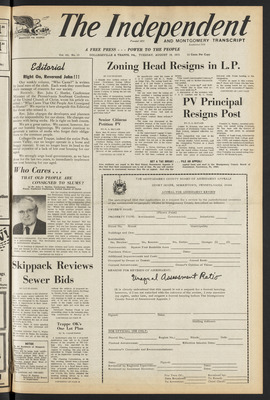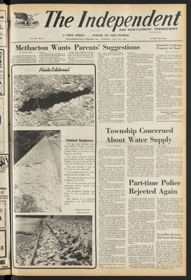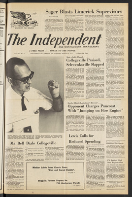 [12] p. "Accept and Defend the Truth." Newspaper published n Collegeville, Pa. Weekly. Contains local, county, state and national news, editorials, letters, classified and local business advertisements.