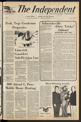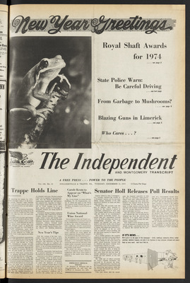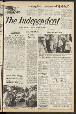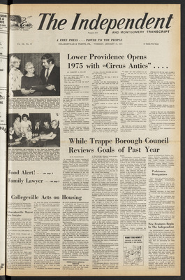 The digital copies of the newspaper available here were produced in cooperation between Ursinus College and Historic Trappe. Please contact Historic Trappe for permissions that fall outside of educational use.