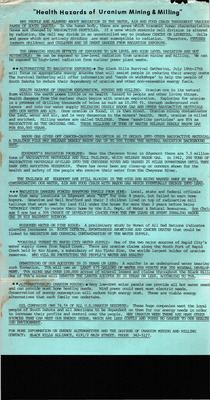 • Health Hazards of Uranium Mining & Milling by Black Hills Alliance