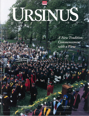 The Philip and Muriel Berman Museum of Art calendar • "Hello, Ursinus calling ..." • Weaving a web: Home page has new look • Spring break plans beached in favor of topical, not tropical • Faculty, staff notes • Costa Rica: "The experience of a lifetime" • The greening of the Ursinus graduation: Commencement moves outdoors • Home is where Sister Mary is: Ursinus' baccalaureate speaker embodies the spirit of service • Faculty profile: Joyce Lionarons calling forth dragons • Psyched!: Psychology students reflect undergraduate research trend • Women gymnasts: A balance of power • Spring sports wrap-up • Class notes • Library showcases blockbuster event • Marriages • Births • Deaths • In memoriam • One person's old wood is another's sunken treasure • Alumni Association news: On the road; Alumni weekend award winners; Election results • From the other side: A diploma doesn't mean goodbye • Upcoming events • A different kind of phonathon • Alumni profile: Chris Drummond '90, business is blooming • Wedding album • Honoring friendship